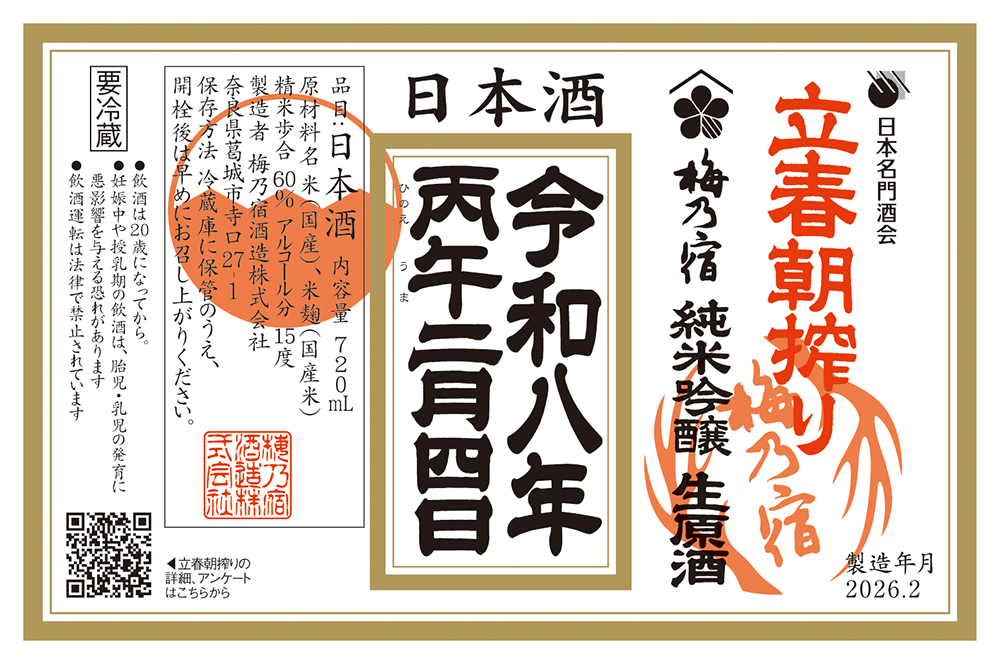 2026年度は諸事情により和歌山県中野BC様ではなく、奈良県梅乃宿酒造様での立春朝搾りとさせていただきます。